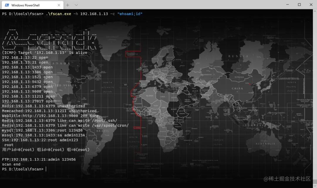 fscan.exe -h 192.168.x.x -c "whoami;id" (ssh 命令)