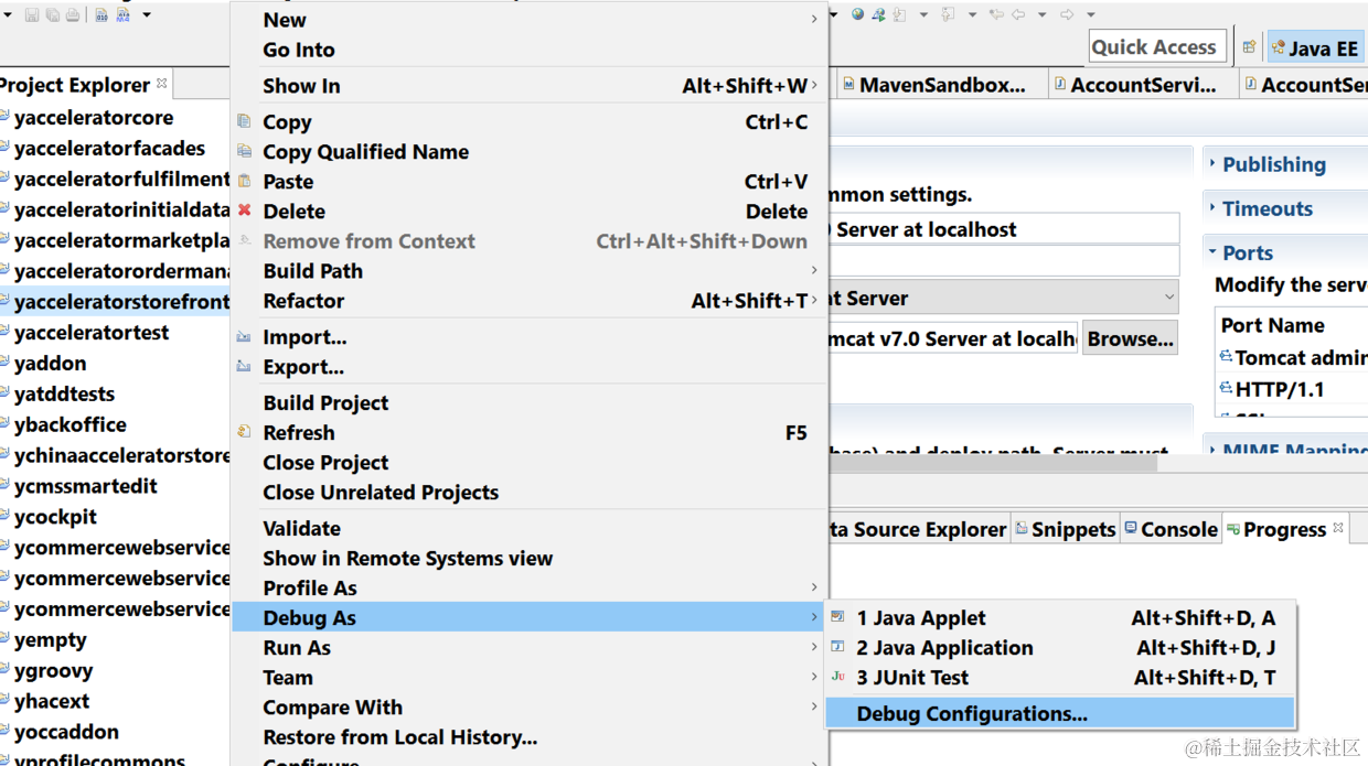 以debug模式启动Hybris服务器