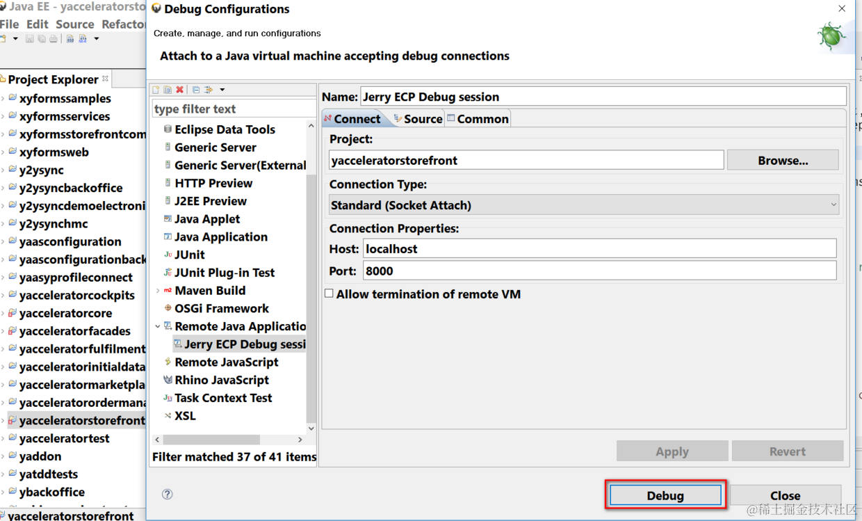 选择remote debug: