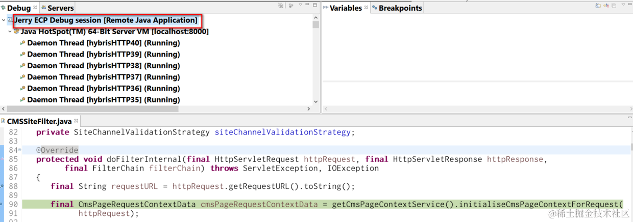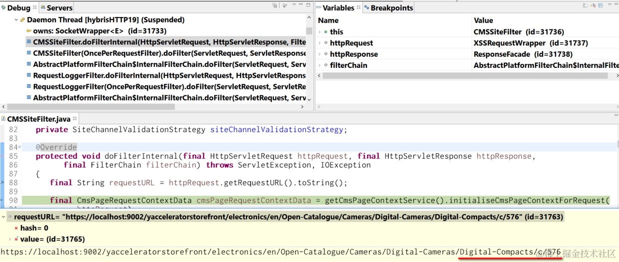 3. Set breakpoint in file \bin\ext-template\yacceleratorstorefront\web\src\de\hybris\platform\yacceleratorstorefront\filters\cms\CMSSiteFilter.java.