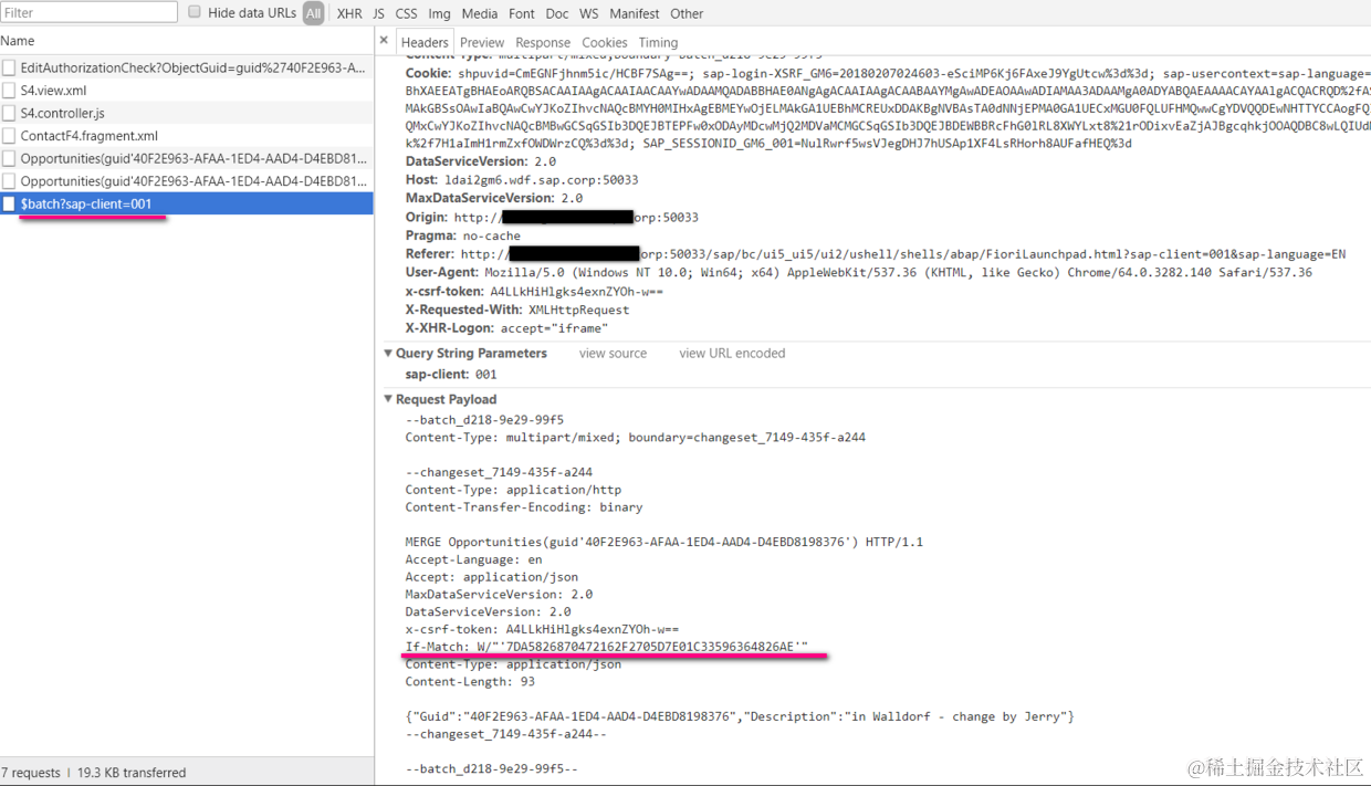 从Chrome Development Tool里能观察到,当Jerry点击了保存按钮后,发送到后台的请求的头部包含了一个If-Match字段,这个字段的值就是Jerry第一次点击编辑按钮时,后台返回给Jerry的26AE结尾的ETAG字段。