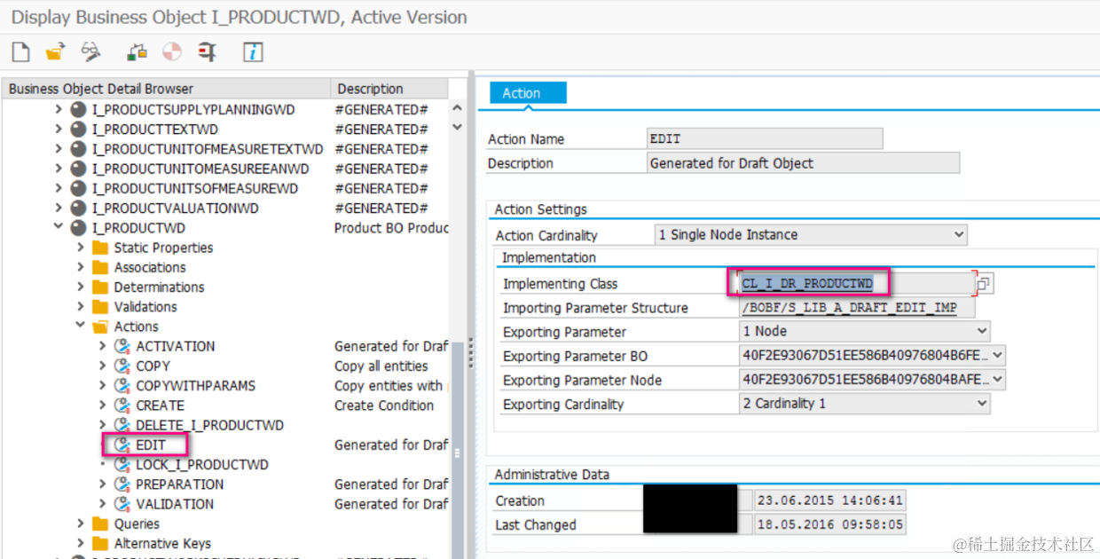 在S/4HANA后台使用事务码BOBX打开BO模型I_PRODUCTWD. 展开模型,双击EDIT,能看到这个Edit实现的类为CL_I_DR_PRODUCTWD.
