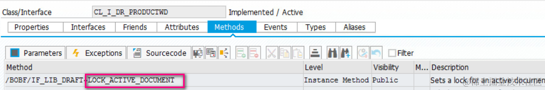 双击这个class,它的方法LOCK_ACTIVE_DOCUMENT就是响应Fiori UI上编辑按钮点击的处理函数。