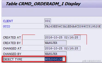 检查CRMD_ORDERADM_I,能发现后台OBJECT_TYPE字段存储的值为BUS2000130.