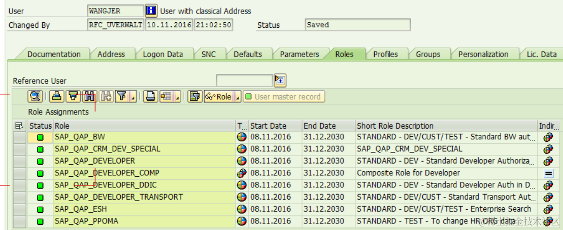 选择其中一个双击,比如SAP_QAP_DEVELOPER: