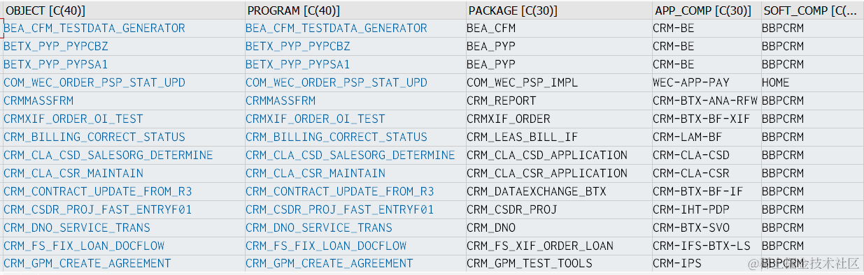 但我接到一个任务,在结果列表里还需要显示出使用了指定的function module的代码所属的Package, Application Component和Software Component。