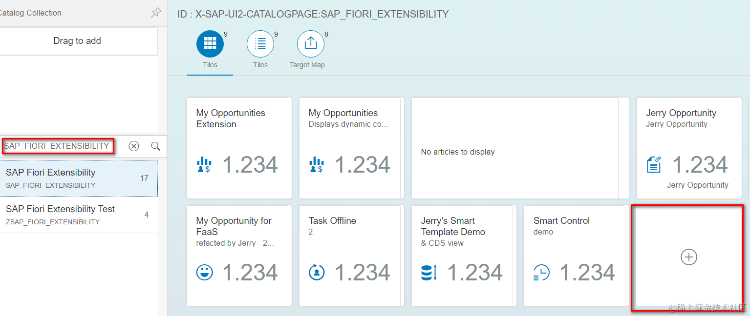 (2). 打开Open Fiori Launchpad Designer, 根据前一步找到的ID搜索出catalog. 创建一个新的tile: