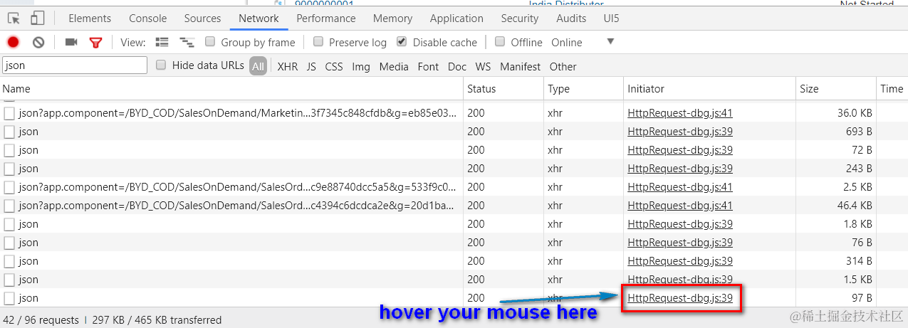 我们可以在Chrome development tool的network tab里观察到从前台UI发送到后台的HTTP请求: