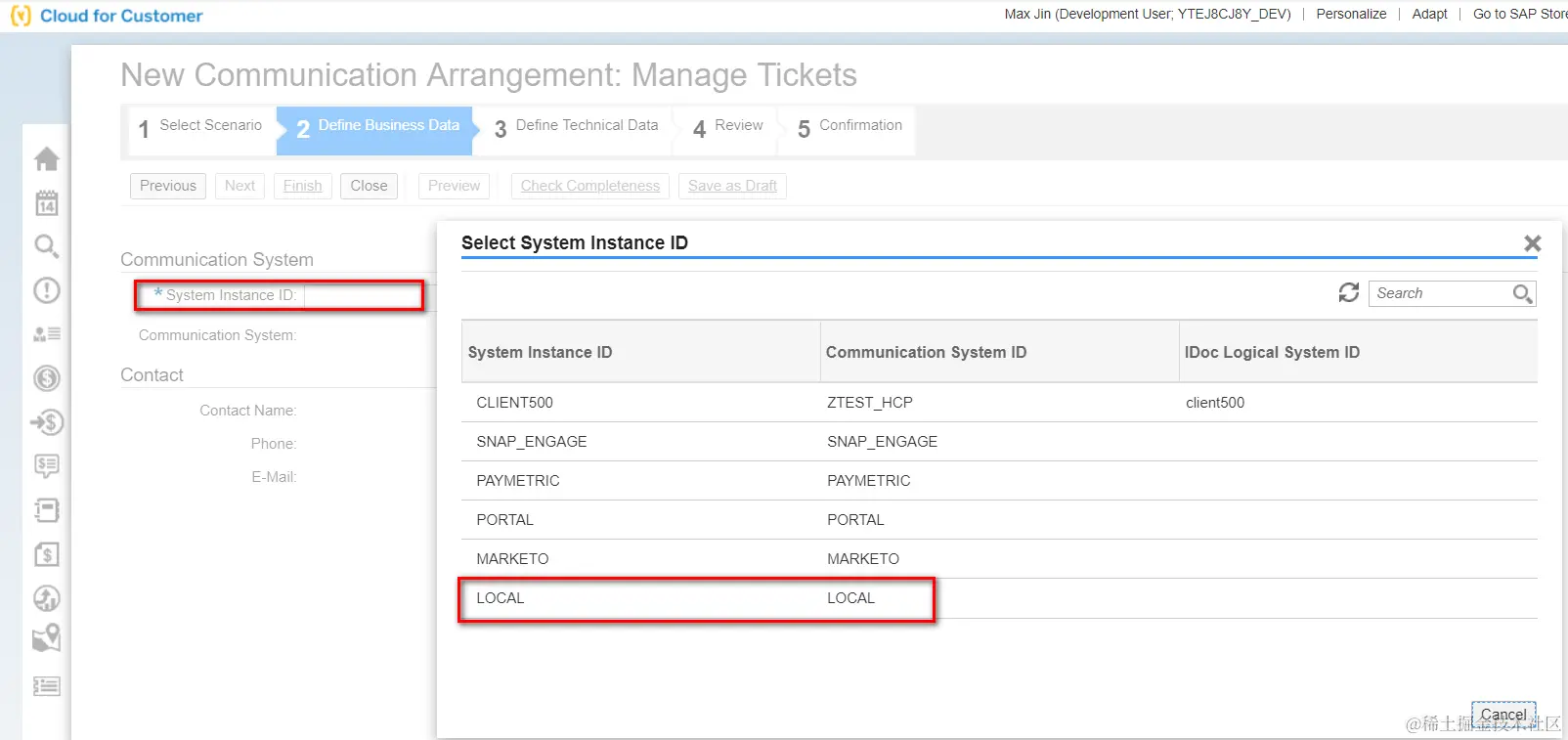 基于Manage Tickets这个标准的Communication Scenario创建一个Communication Arrangement: