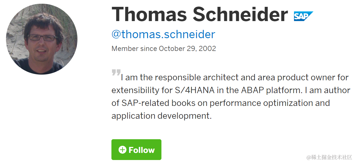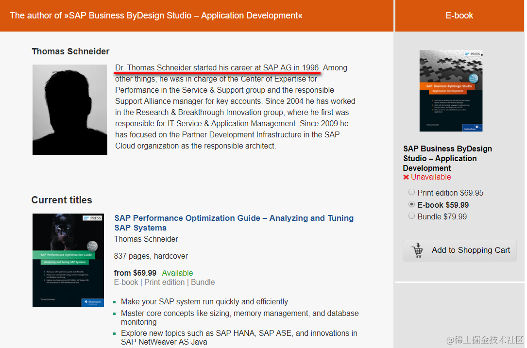 Thomas博士1996年进入SAP工作至今,出版过多部SAP技术著作。我去德国Walldorf总部出差时,曾看到不少同事桌上都摆着他的一两本书。