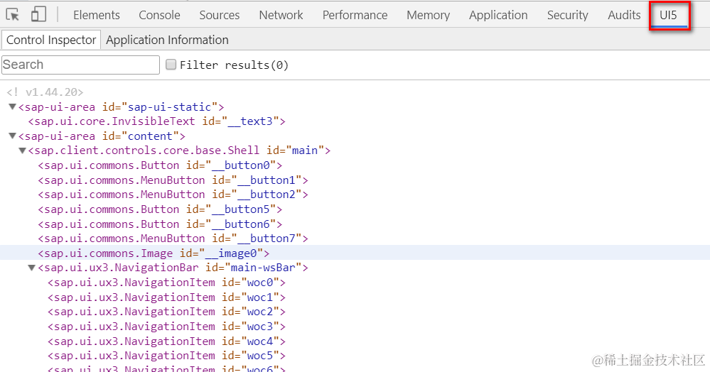 安装之后在Chrome开发者工具会多出一个名为UI5的标签页,如果一个UI基于SAP UI5,则该标签页会显示对应信息,否则显示空白。