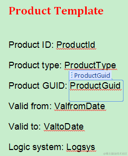 值得一提的是,SAP CRM支持更为强大的word模板功能,即用户可以在本地开发一个word模板文件,将里面的字段绑定到CRM标准的BO模型字段上。比如下图我将该模板分配给CRM Product(产品)这个BO,然后将BO上需要的字段从文档右边的树形结构拖拽到文档左边:
