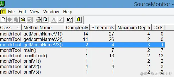 而Java可以用一个叫做SourceMonitor的工具测量环复杂度: