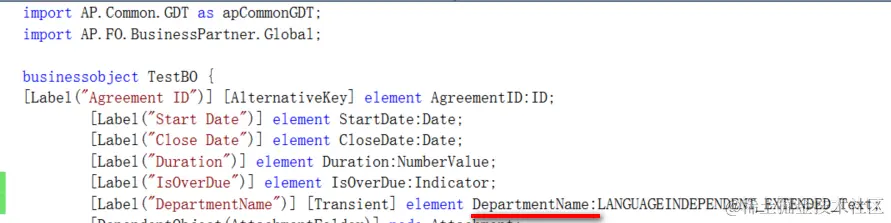 具体实现:新建一个custom BO,使用字段DepartmentName存储这个待取的值: