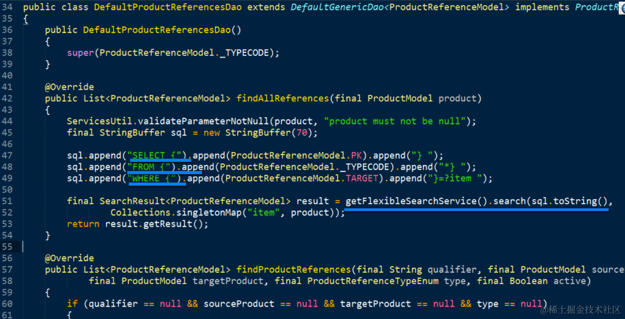 随便点开一个DAO看实现,里面也是拼SQL语句然后抛到DB去执行: