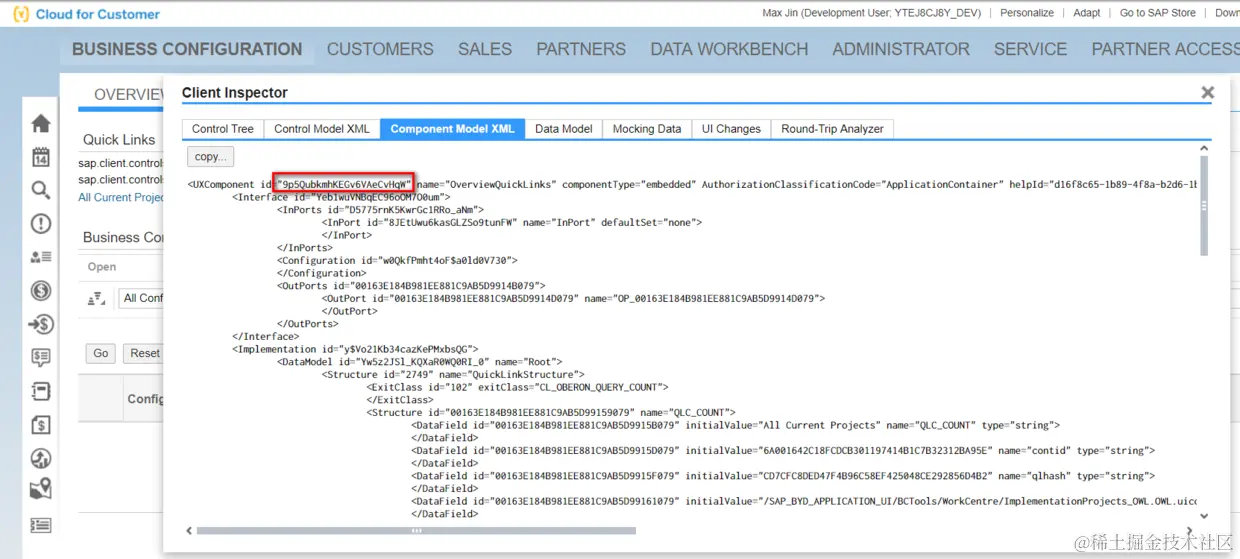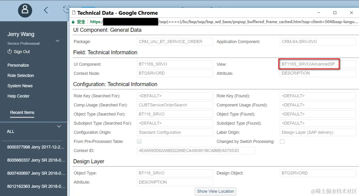 在WebClient UI页面上按F2,就能看到页面的技术信息, 可以找到当前页面是哪一个BSP component实现的: