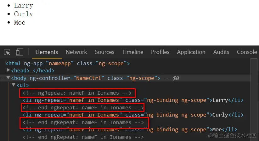 这就是我要寻找的Angular框架创建包含ngRepeat注释的代码位置: