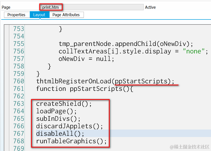 3. 我们按了ctrl+p后生成的页面的内容就是在print.html里生成的。核心代码在函数ppStartScripts里,被thtmlbRegisterOnLoad注册到页面的load事件里,意思是print.html加载时就执行。