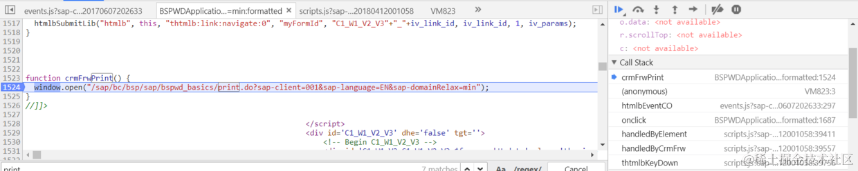 从右上角的调用栈能发现crmFrwPrint被调用。crmFrwPrint会打开print.do这个控制器,位于BSP应用bspwd_basics里。
