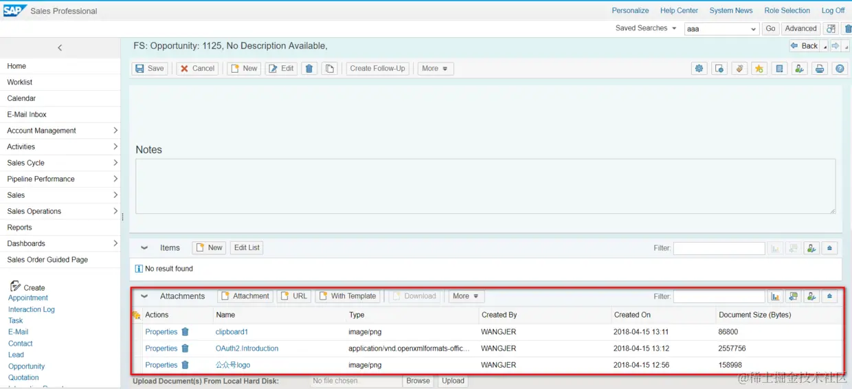 SAP CRM使用Attachments这个UI给用户提供内容管理的功能。通过新建按钮可以上传本地文档到CRM系统: