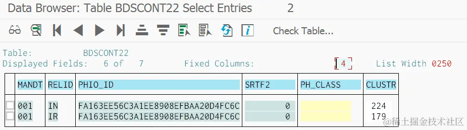 因为除了文本文件,内容管理系统还需要支持其他诸如PDF或视频文件的存储,因此数据库表对应字段采用了特殊的数据类型INDX_CLSTR和INDX_CLUST,因此文件的具体内容无法直接通过在事物码SE16查表浏览。
