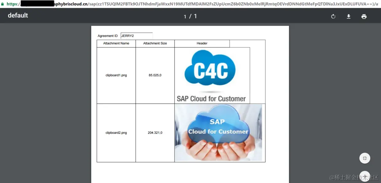 实际情况是,每次点击超链接,C4C的ABAP后台会动态计算出该文件供用户下载或者预览的url: