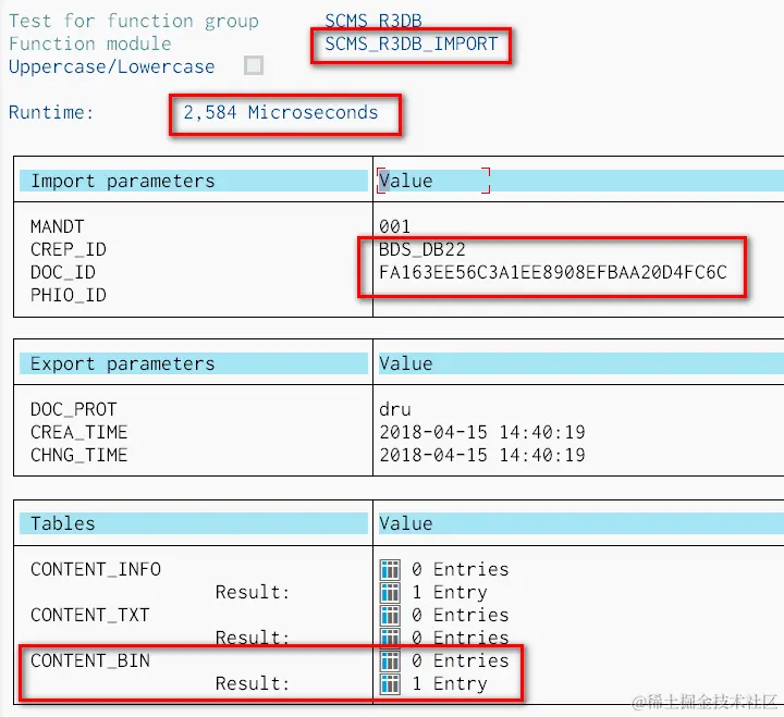 而需要使用function module SCMS_R3DB_IMPORT。如果查看其代码,会发现这个函数正是使用了ABAP关键字IMPORT去操作这两个特殊的表字段从而读取出文件的实际内容。