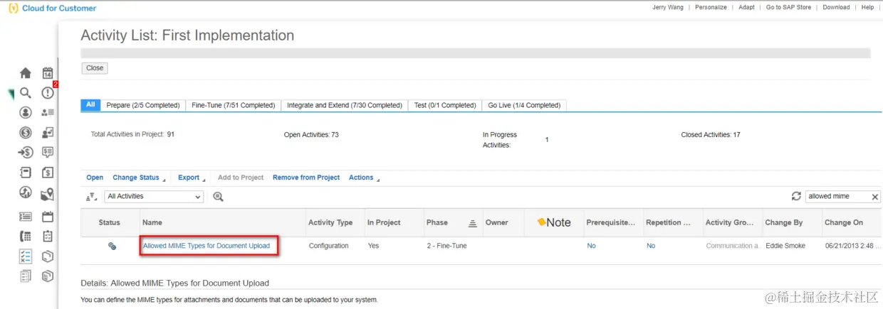 除此之外,您也能通过Business Configuration工作中心里配置允许哪些MIME Type的文件上传到C4C系统。