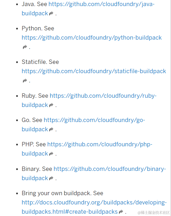 Cloud Foundry支持如下buildpack甚至自定义buildpack,而Neo不支持。