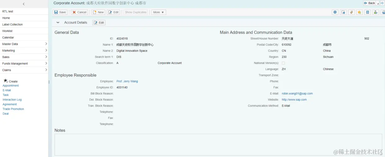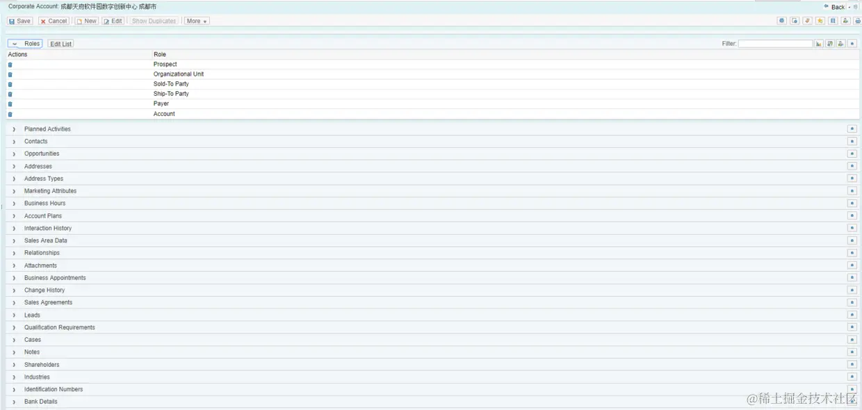 下图是SAP CRM里某个Corporate Account明细页面的抬头区域。