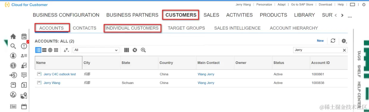 工作中心视图Accounts和Individual Customers分别对应了SAP CRM里的Corporate Account和Individual Account。