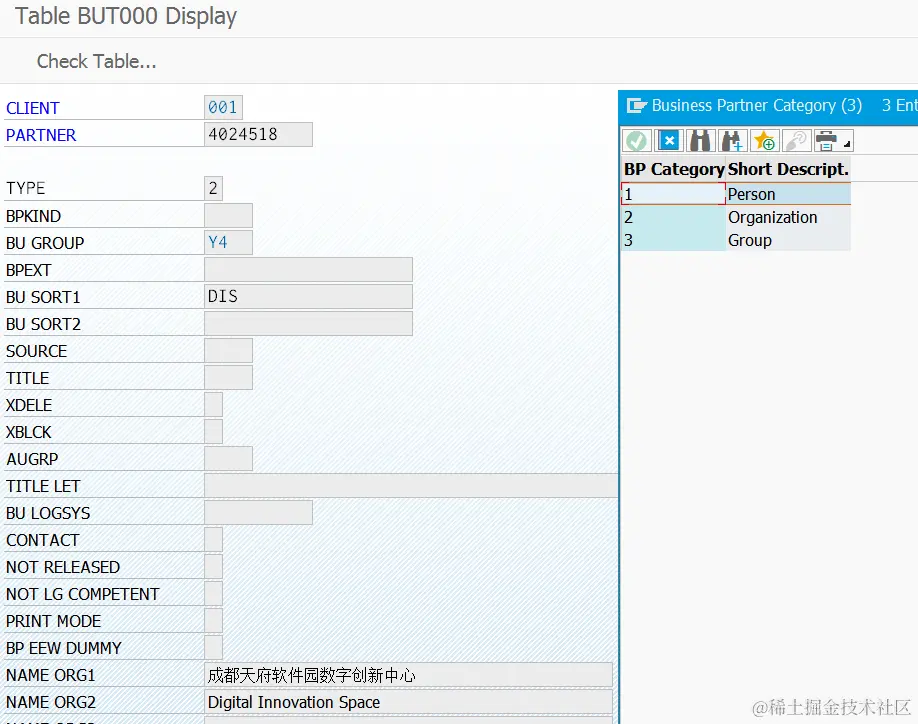 CRM客户模型的底层数据库表:BUT000。用于区分Corporate还是Individual Account的字段名称: TYPE。