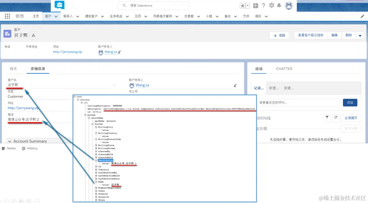 使用我公众号文章Jerry和您聊聊Chrome开发者工具提到的技巧找到客户明细页面的UI模型地址: