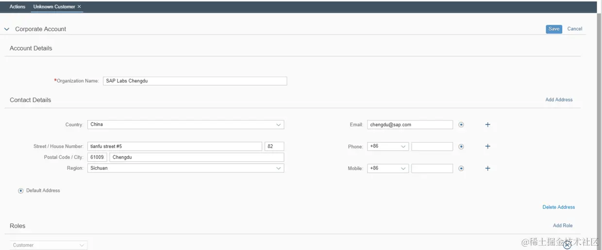 前一章节介绍里使用CRM Web Client UI打开了一个Corporate客户。这里用SAP CRM Fiori再次打开它。