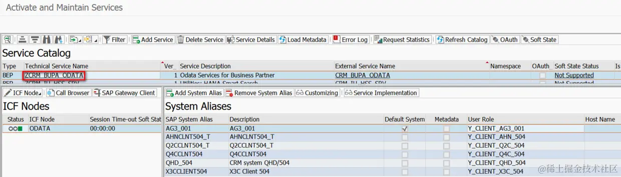 在网关系统根据该服务名称搜索,能查到提供该OData服务的后台服务器。
