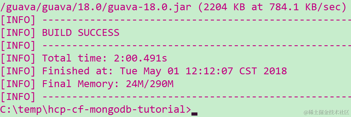 该命令会生成一个hcp-cf-mongodb-tutorial-1.0-SNAPSHOT.jar: