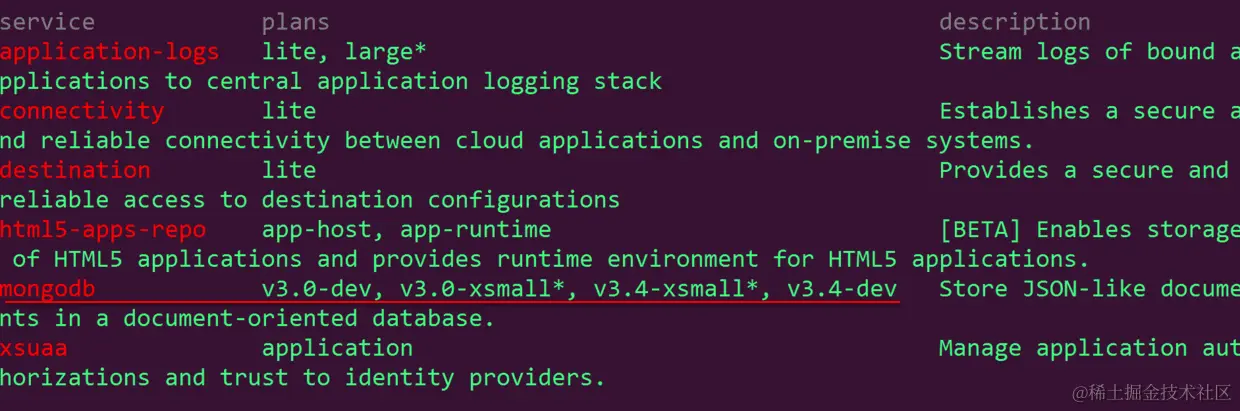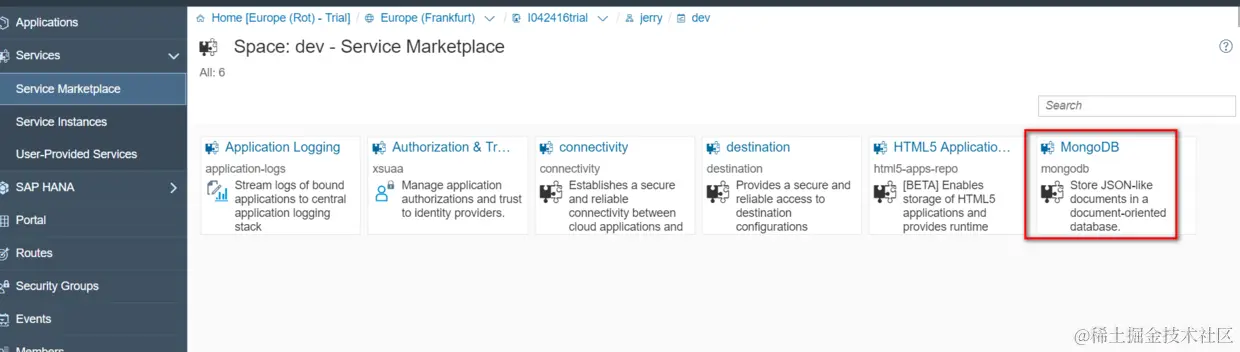 我想在SAP云平台的Cloud Foundry环境下使用MongoDB的服务,但是我在Service Marketplace上找不到这个服务。