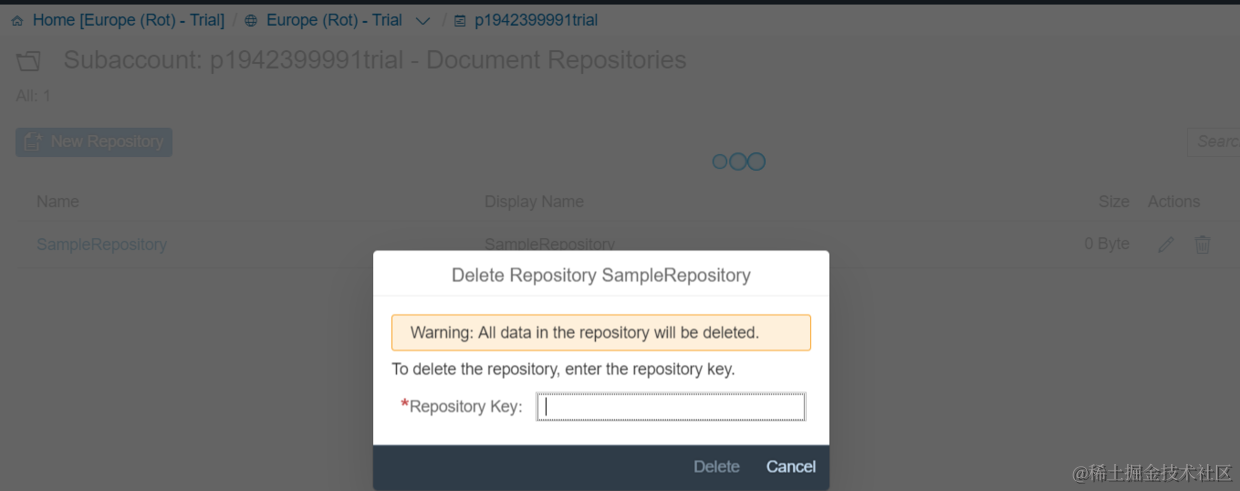 在SAP云平台的Cockpit里能够看到成功创建的repository: