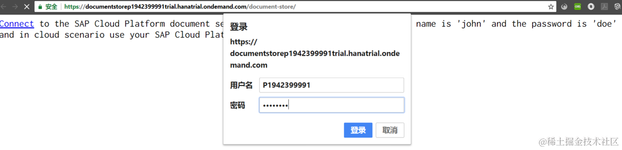 将该应用部署到SAP云平台之后,访问该应用看到如下提示信息: