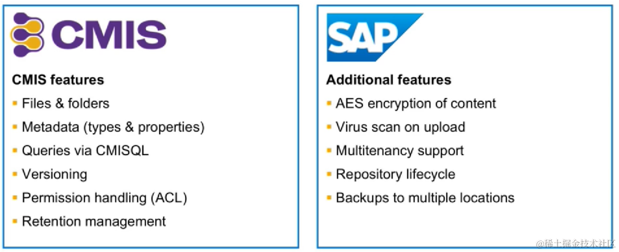 同标准的CMIS相比,SAP云平台的Document Service增添了一些功能的支持:
