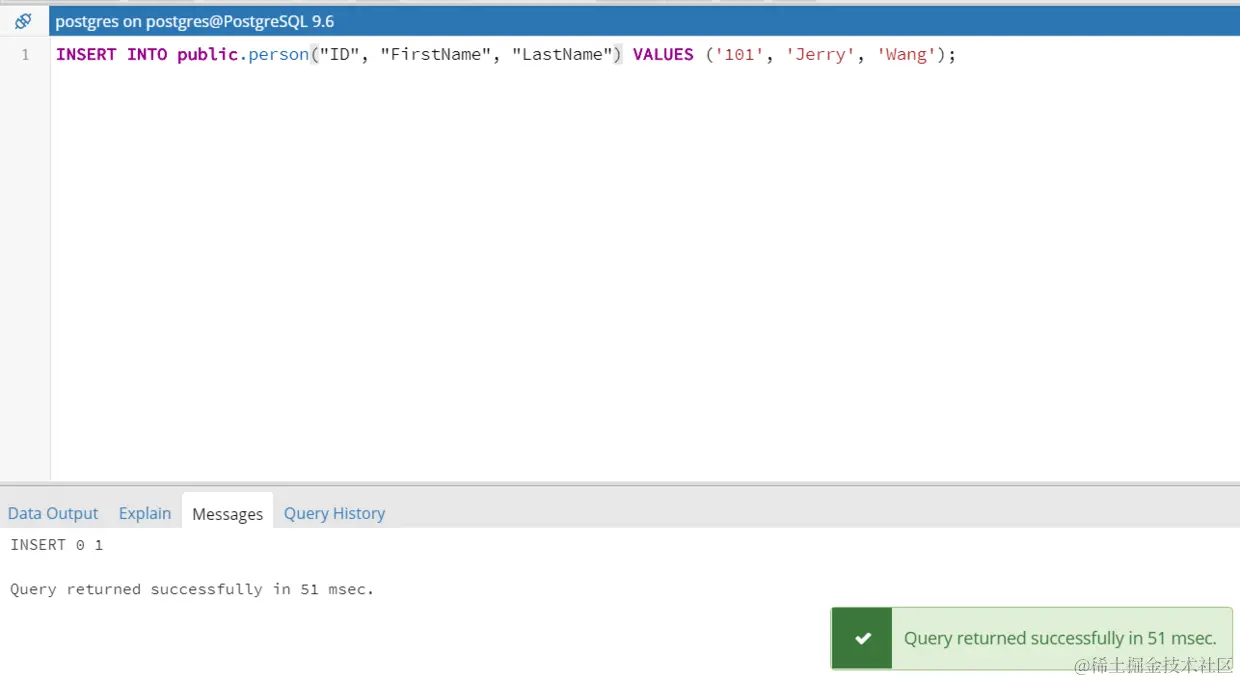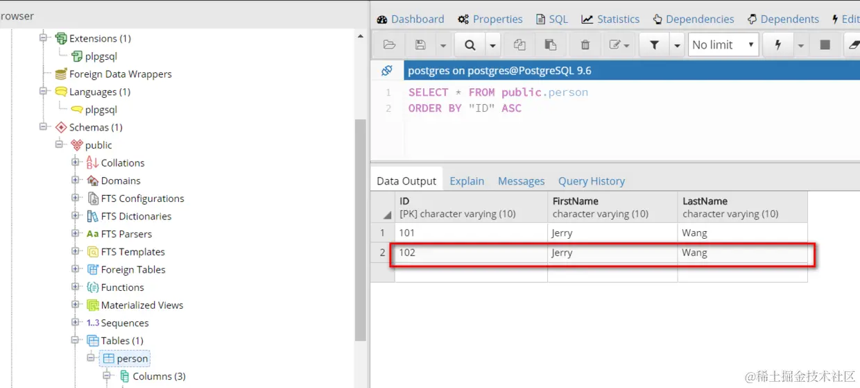 效果和使用命令行工具psql的效果一致。