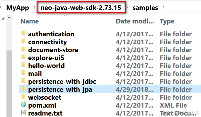SAP云平台neo环境的SDK下自带了一个JPA的hello world应用,位于文件夹samples下面,名称为persistence-with-jpa: