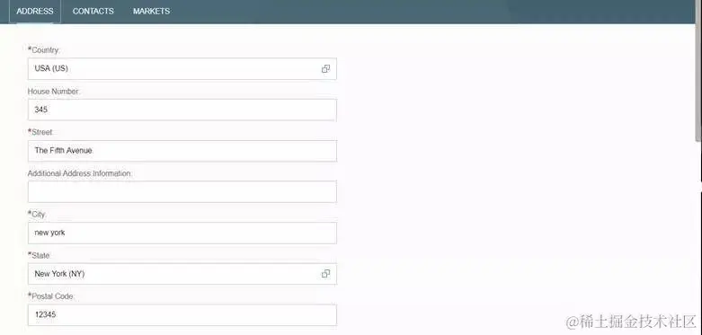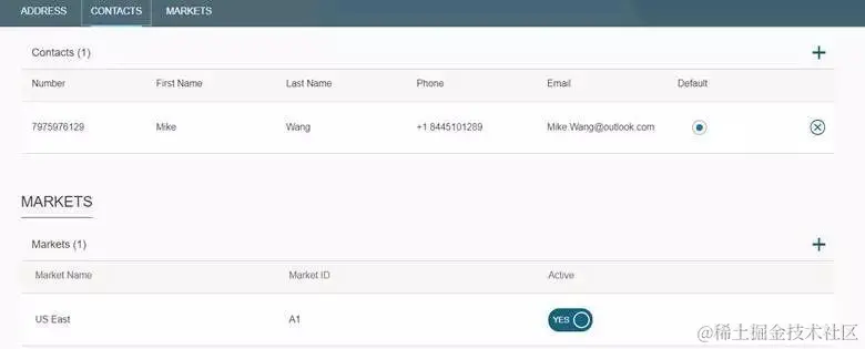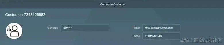 基础配置完成后,便可以创建主数据。首先到Customers Tile里维护客户信息。可以创建个人客户或者企业客户。下图创建一个企业客户,维护客户的地址、联系人信息,并且指定到之前创建的Market A1-US East: