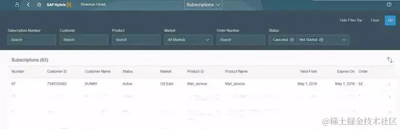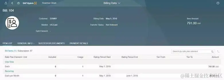 设想这个场景:使用Revenue Cloud的企业A有一个客户SUNNY,该客户需要订阅A公司的Email service用于自身产品发送邮件的需求。A公司的Email service属于订阅型产品,按使用收费。那么A公司从创建客户到客户账单生成这一端对端的流程,在SAP Hybris Revenue Cloud中便可通过上图界面完成。