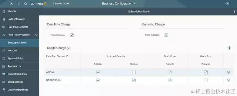 在计费元素定义好之后,接下来便可配置在创建和编辑报价单时可以编辑哪些价格元素,以及在产品包含的数量使用费用中编辑和隐藏哪些价格元素。