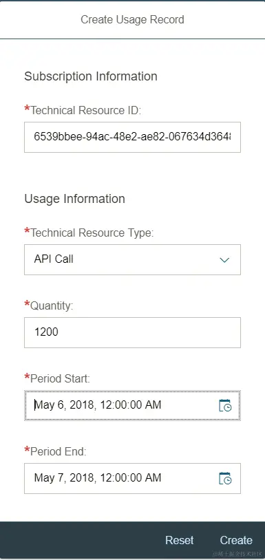 客户对该产品的使用数据可在Usage Data中维护,倘若客户SUNNY使用了1200次APICall, 维护使用数据如下图: