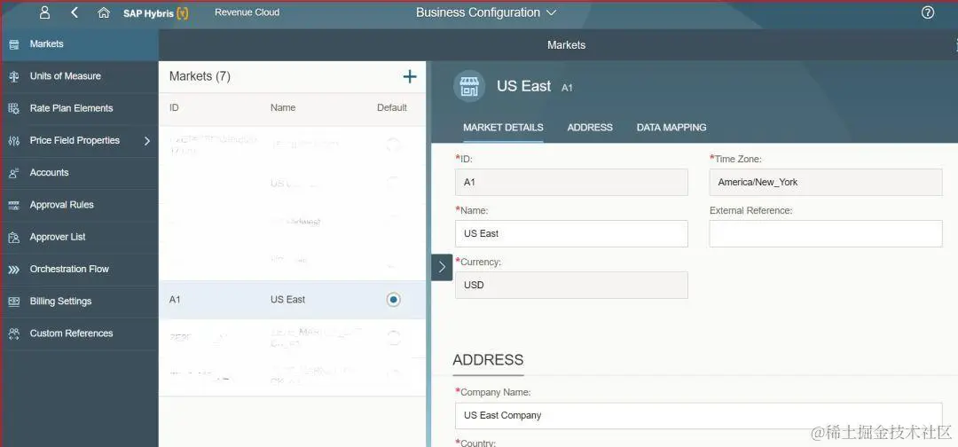 首先进入Business Configuration配置产品流程需要的基础元素,创建一个ID 为A1的market: