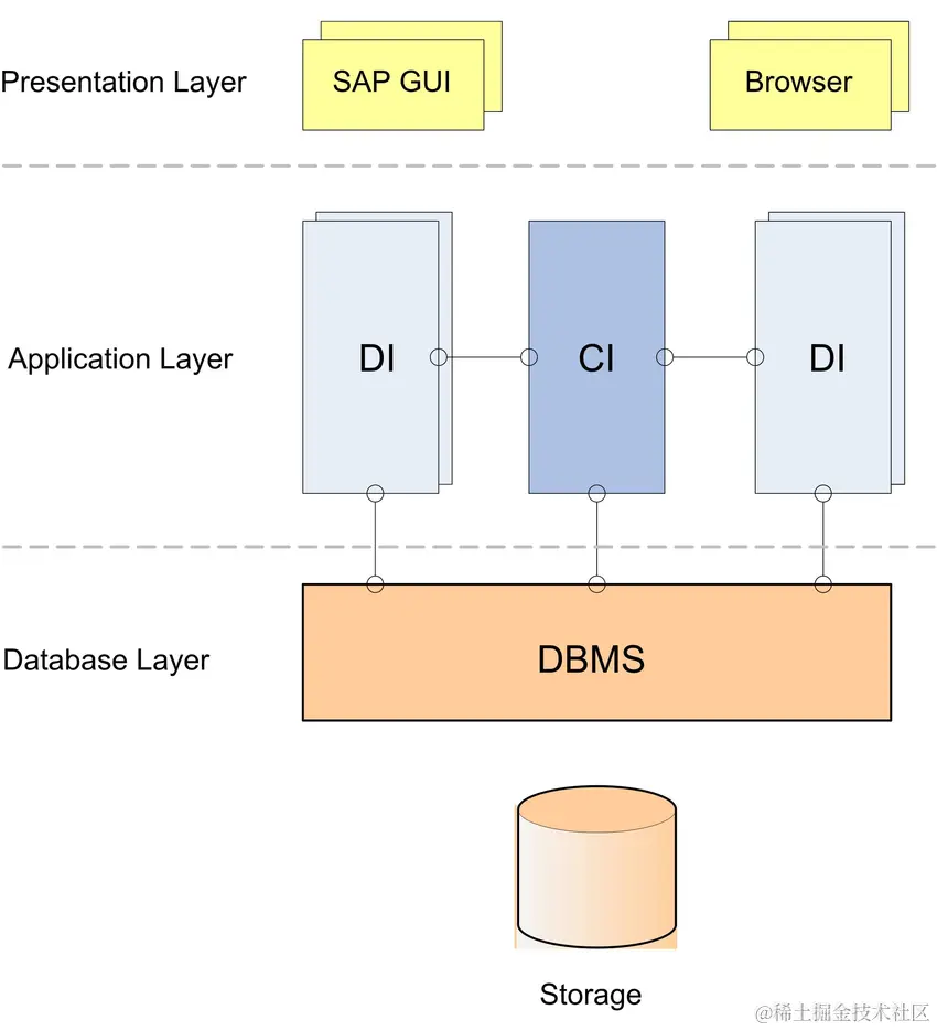 起到负载均衡的消息服务器(Message Server)在图中没有得到体现。然后,消息服务器在我们每天用SAPGUI工作中扮演着重要的角色。