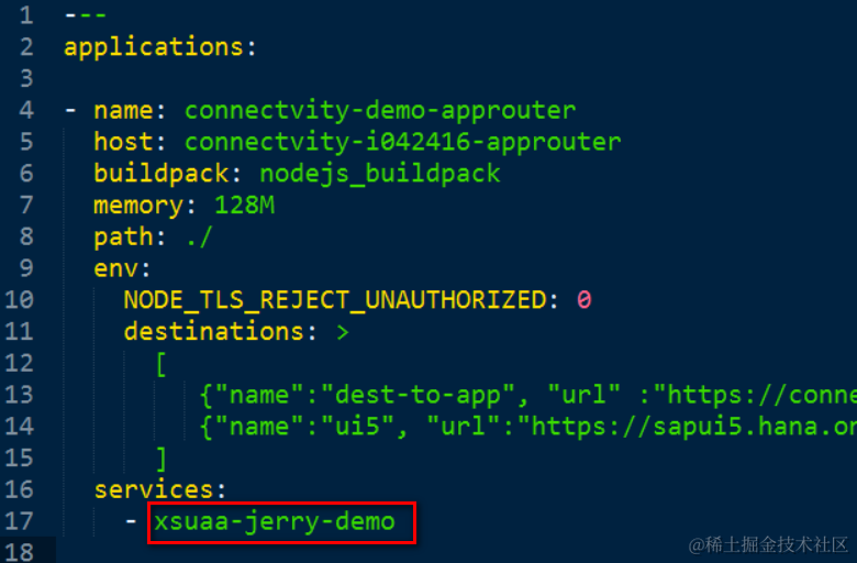 app router在manifest.yml里定义的XSUAA实例 xsuaa-jerry-demo,